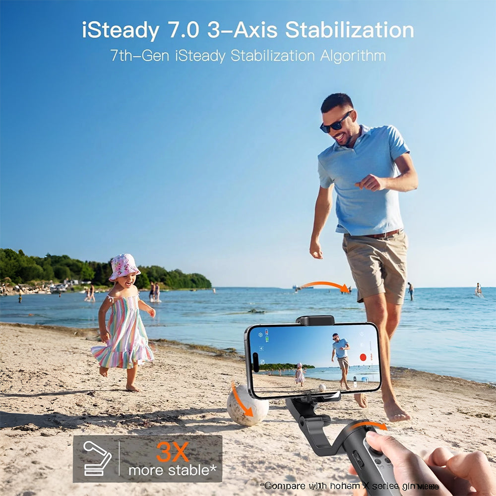Unparalleled Stability : Introducing the hohem XE gimbal stabilizer for smartphones, featuring the advanced iSteady 7.0 3-axis stabilization system. With its enhanced algorithm and improved motor, it delivers an astounding 3 times more anti-shake performance compared to the previous X series, guaranteeing exceptionally smooth and stable video footage. Say goodbye to shaky hands and capture clearer, more stable video clips with ease. The XE Gimbal elevates your content creation to new heights!