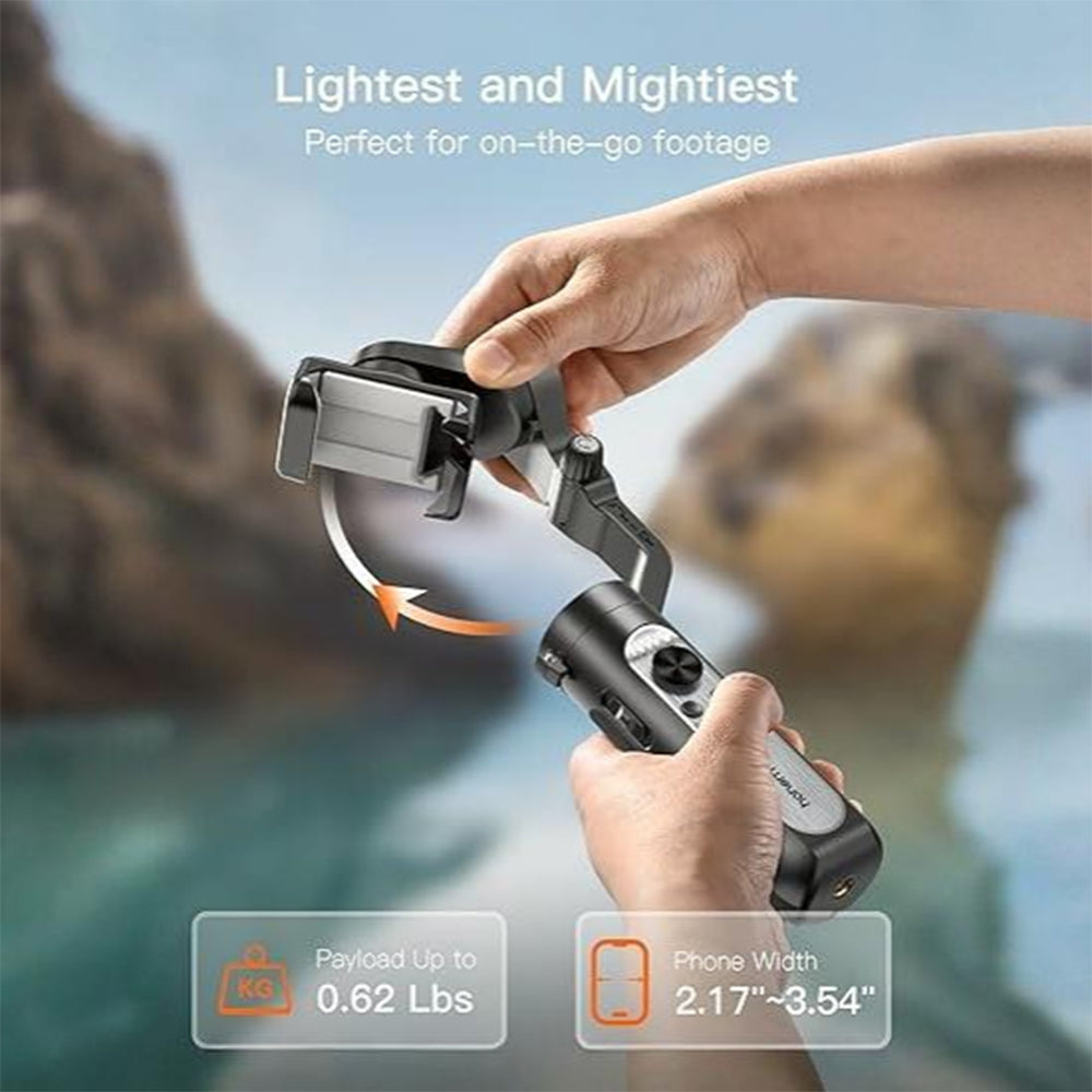 Upgraded Power and Payload Capacity : The gimbal stabilizer showcases a remarkable 30% enhancement in motor power compared to its X series predecessor, while supporting an impressive payload of up to 0.62 lbs. Its mobile phone holder offers a flexible range of 2.17 - 3.54 inches, ensuring compatibility with various smartphone sizes. Whether you own an iPhone 14 Pro or any large-sized smartphone, the stabilizer handles it with ease, maintaining impeccable stabilization performance at all times.