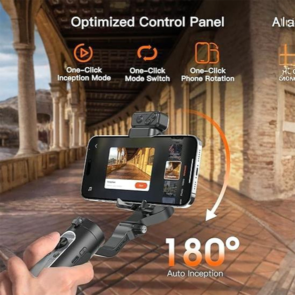 Effortless Usage : The XE Gimbal Stabilizer for Smartphone is designed to be the first phone stabilizer for beginners, offering seamless installation and shooting. Say goodbye to tedious leveling and simply clamp your phone at the center. With the Hohem Joy app's creative templates, even novices can capture professional-grade footage effortlessly. Plus, the Inception mode now has no app limits, capturing mesmerizing 180° fantasy Inception videos at the press of a button.